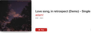Adam wrote a song called Love Song, in Retrospect in December. The lyrics and the music came together hand-in-hand for this new tune and Adam cut a demo recording of it using his IPad.