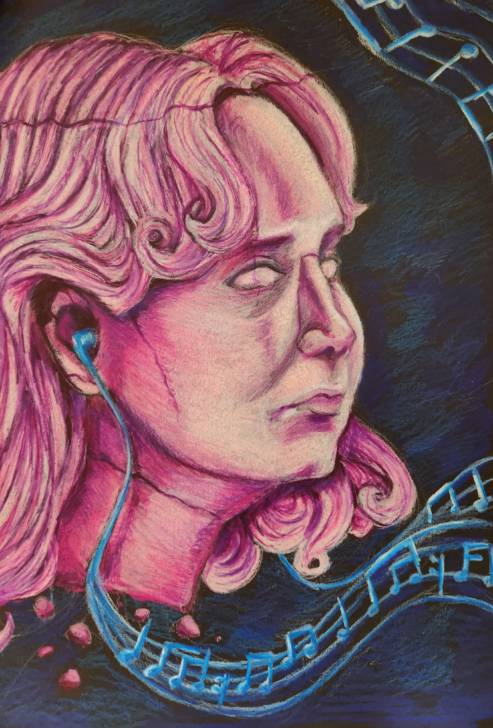 I have faced some challenges creating my work and it comes to making good compositions, making sure I’m spacing things out correctly. I definitely try to figure out if I drew something correctly and if colors go or if they don’t go. My art style is realistic. It’s stylized – I push the colored pencils to opacity that makes it look kind of like oil paint but it isn’t.