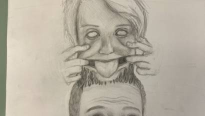 My AP Art portfolio follows a theme of emotion and I want to show a wide range of emotions someone could experience through their life. That includes happiness, sadness, anger, frustration and jealousy as well. I studied facial expressions and that’s how I was able to create those emotions – with slight changes in my art in the creases of people’s face. I also studied portraiture and I describe my style as realistic.