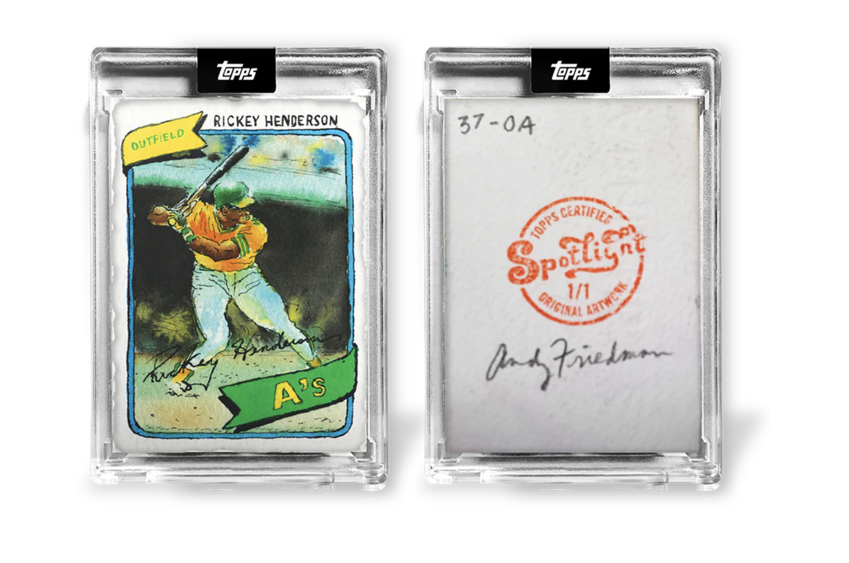 One of Andy’s future goals is to exhibit his art in a traditional gallery. But in his latest Topps set, which was released last summer and sold-out in minutes, Andy’s card-sized original paintings were included in packs for collectors to win. Beyond what the paintings express, Andy feels that the work he’s been doing in collaboration with Topps challenges the traditional perception of what an exhibit can be. “The exhibit of my latest paintings happens when a collector wins an original in a pack.”