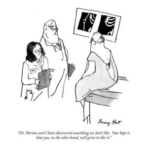 Shortly after his first drawing was published in the magazine, he was promoted to a new job at The New Yorker, where he became the Assistant to the Cartoon Editor. Before long, he started including some of his own cartoons under the pseudonym Larry Hat in the batch of work they reviewed each week, and they started to sell! After work, he’d go home and work on his paintings.