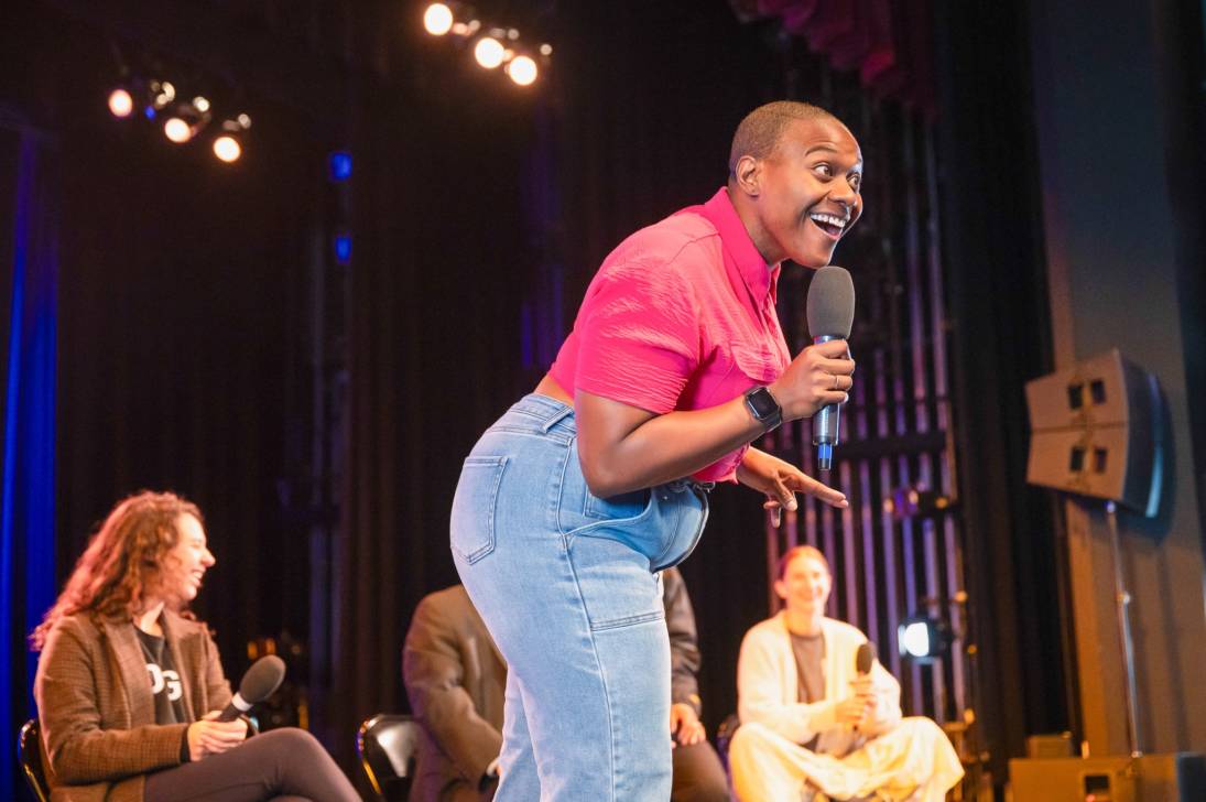 Mia Pinero, known for her roles in “West Side Story” and “Sweeney Todd,” captivated the audience with “Green Finch and Linnet Bird” from “Sweeney Todd,” followed by a stirring rendition of “Burn” from “Hamilton.”