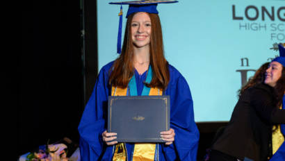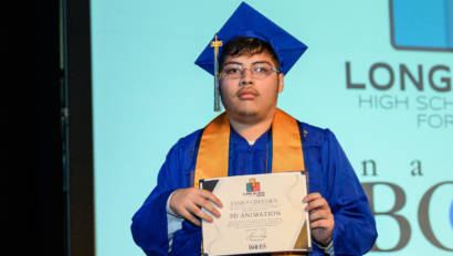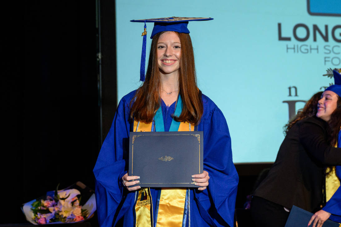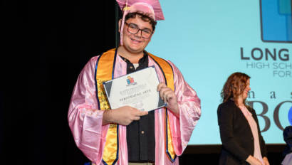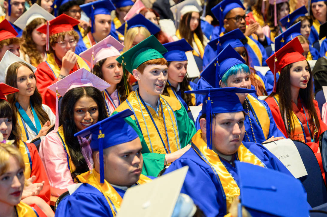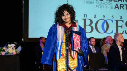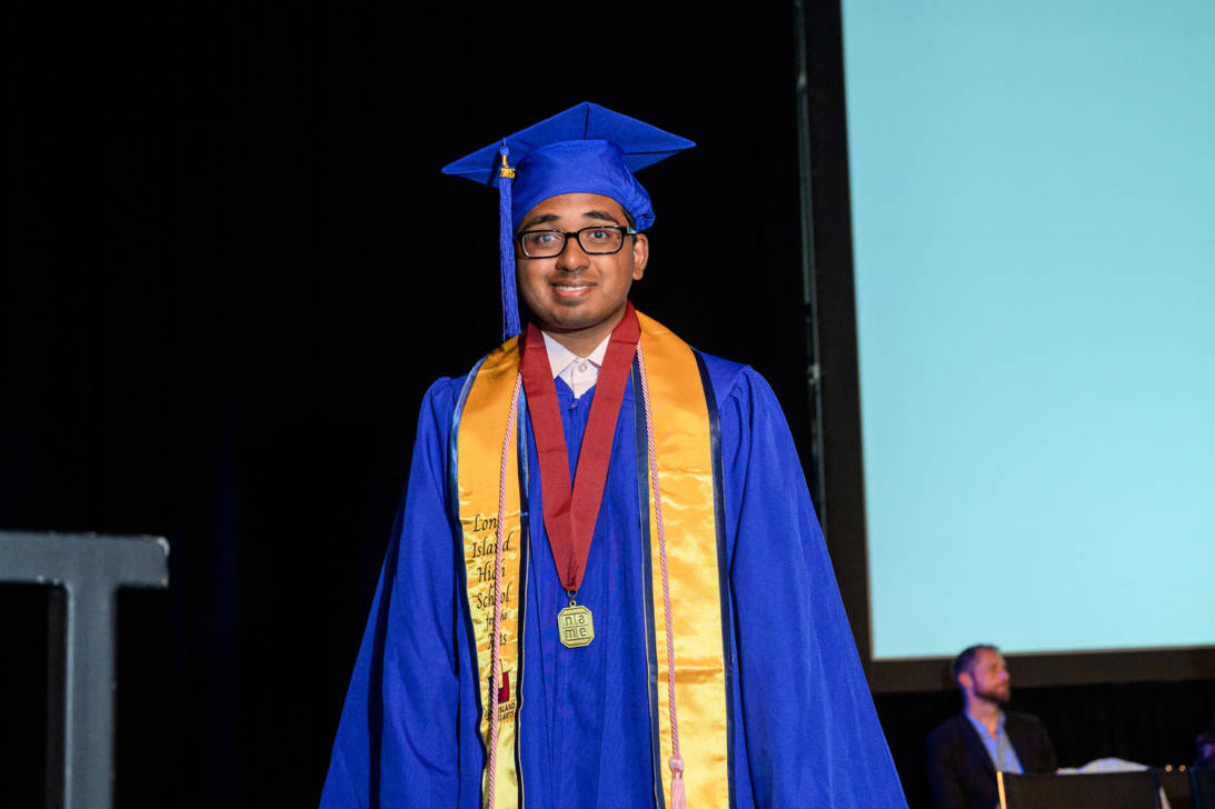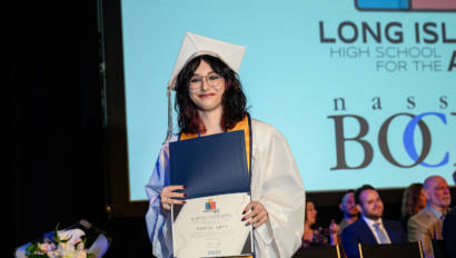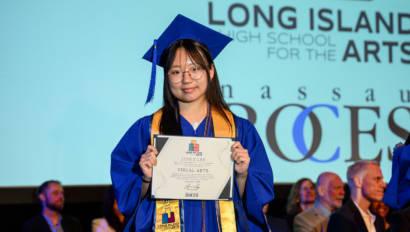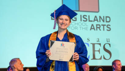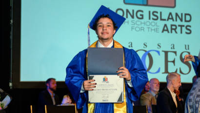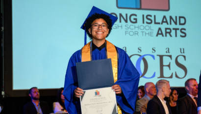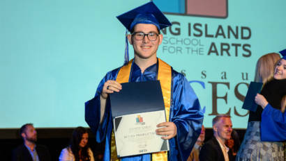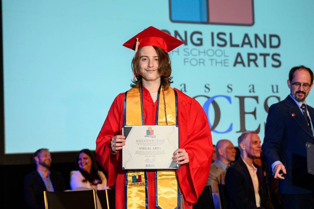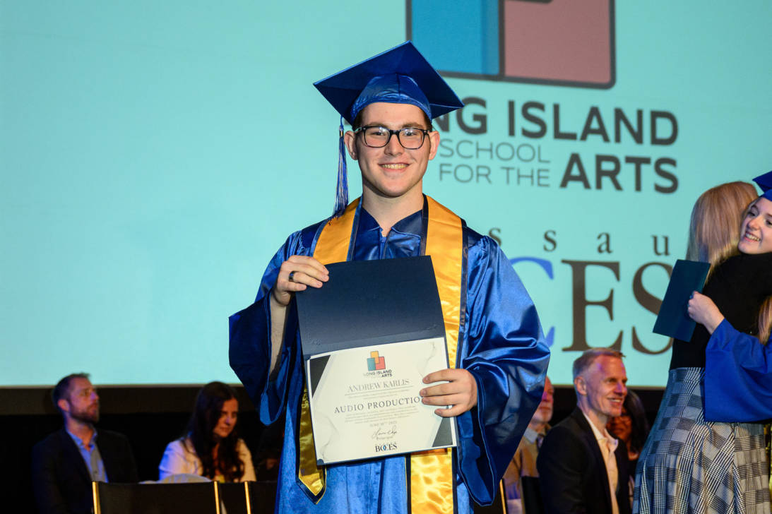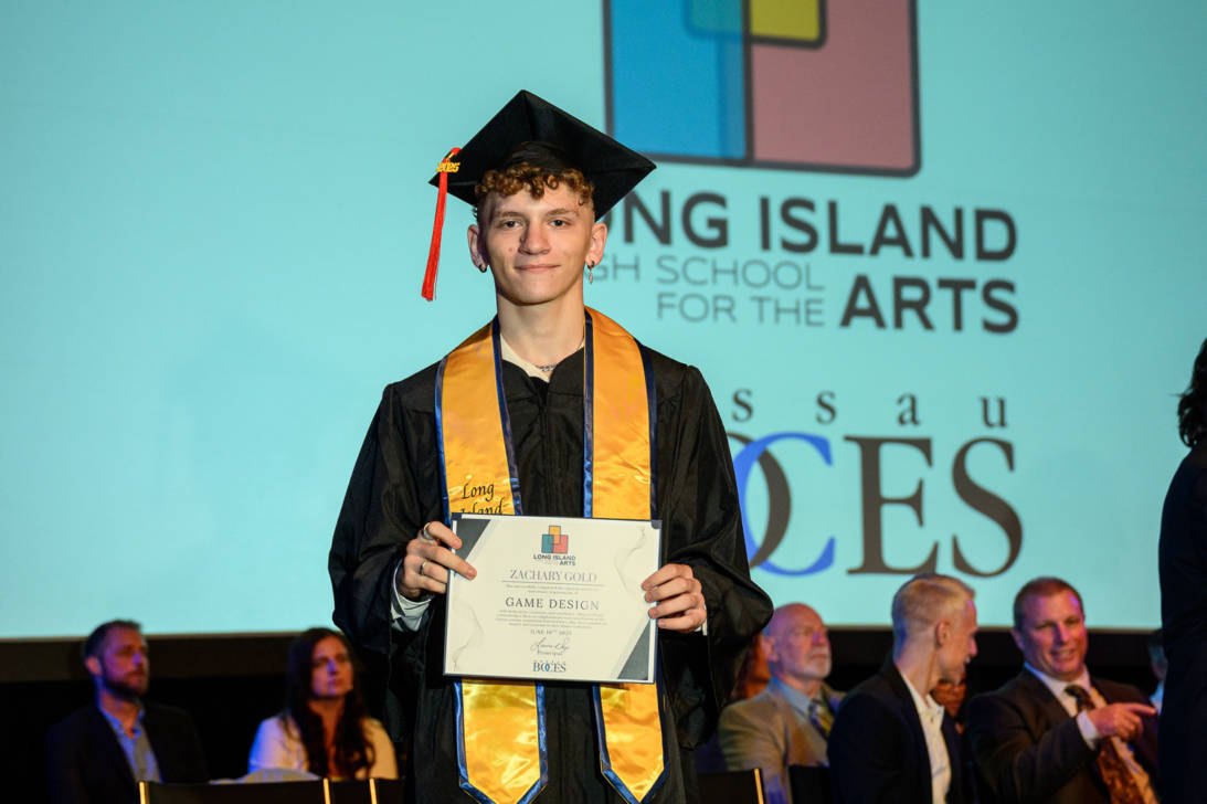 Graduates from diverse programs like 3D Animation, Performing Arts, and Visual Arts walked the stage, each representing a district from across Long Island.
