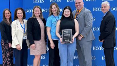 Her love and dedication to LIHSA is evident in her involvement in school activities, active participation in class, and in her warm and welcoming spirit. Alexandra, it has truly been a joy to see you grow in confidence this year. LIHSA Assistant Principal, Lindsay Rogan, Dance Teacher, Natalie L’Etoile, Superintendent of Hicksville School District, Dr. Ted Fulton, joined the Nassau BOCES Board of Education to celebrate Alexandra while she received her George Farber Outstanding Student Award.