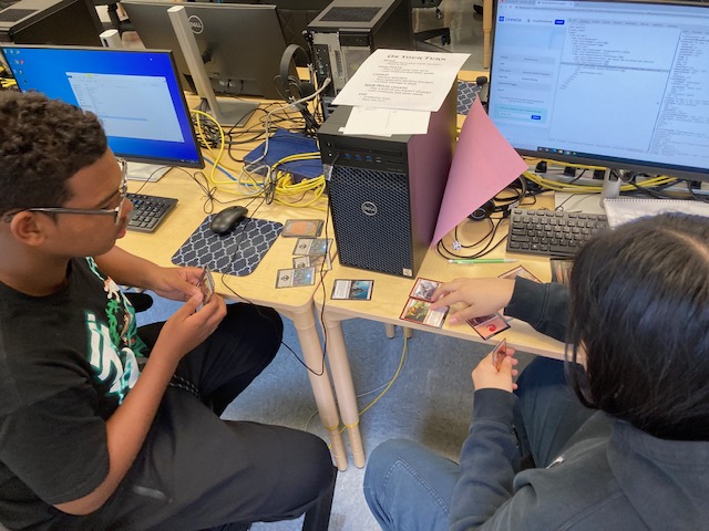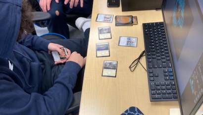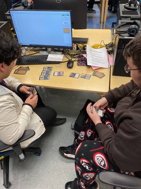 This year in Puzzles and Games class, Game Design students learned about different board and card games. This helped students to learn the strategy and storytelling of gaming. One of the games discussed in class was called Magic: The Gathering.