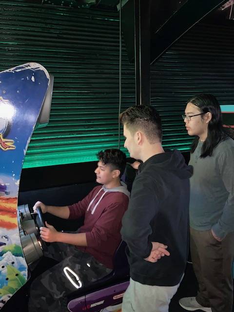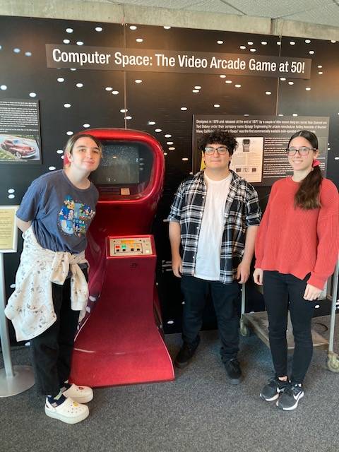 For the first part of the trip, students learned about and played video games from the first video game called Space War (pictured with game: Kyra Townsend, Dylan Urgo, and Gianna Forte), to current games such as Rocket League.