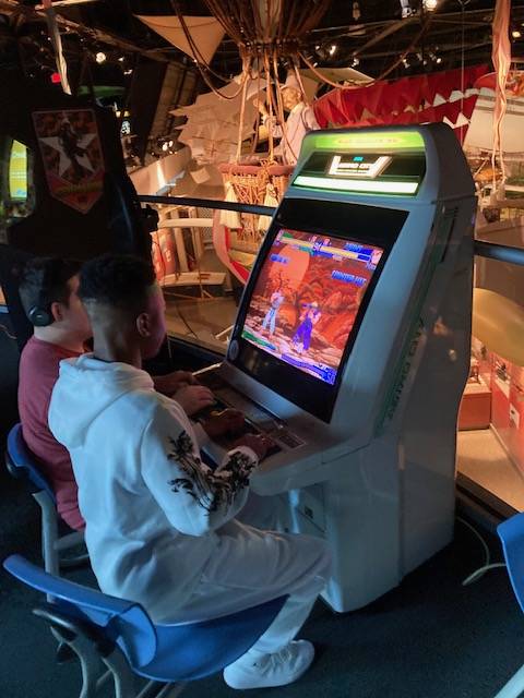 On Wednesday, March 8th, Game Design students had a real adventure. They headed to The Cradle of Aviation Museum, a museum that celebrates Long Island’s contributions to aviation. The museum currently features The Arcade Age Exhibit, with video arcade games from the 1940’s to the 1980’s and 1990’s. Ms. Pac-Man, Space Invaders, and Donkey Kong are only a few of the classics that the LIHSA Game Design students got to play and study.