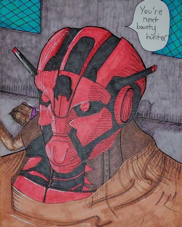 So, he attended LIHSA his junior and senior years, graduating in 2018. Jason Cuvelier was his main art teacher who prepared him well. Ramsey especially recalls working with guest artist Frank Porcu who was himself a LIHSA alum. Ramsey particularly recalls Porcu’s anatomy lectures focused on bone structure from face to bust. “This class really stuck well and left a good memory.”