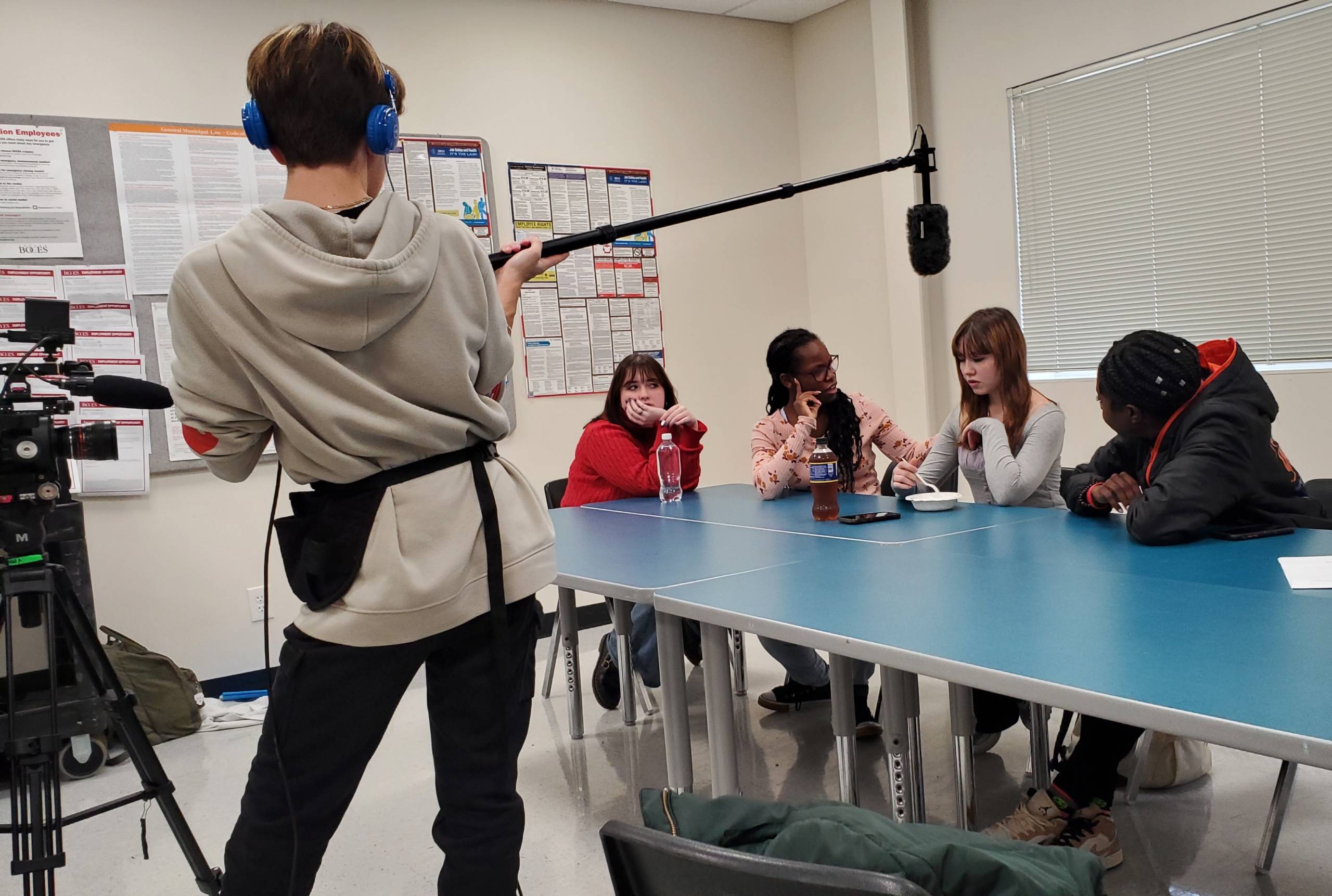 Michael Arbouet, an independent filmmaker, author and podcaster, has been enjoying a residency with students in the Introduction to Collaboration class, in which he has been coaching students about how to work in the many different aspects of the entertainment industry. Additionally, he is working with students in the Actors/Working with Filmmakers class, in which students are working on all aspects of the creation of two short horror films.