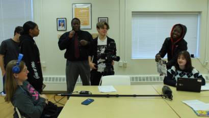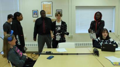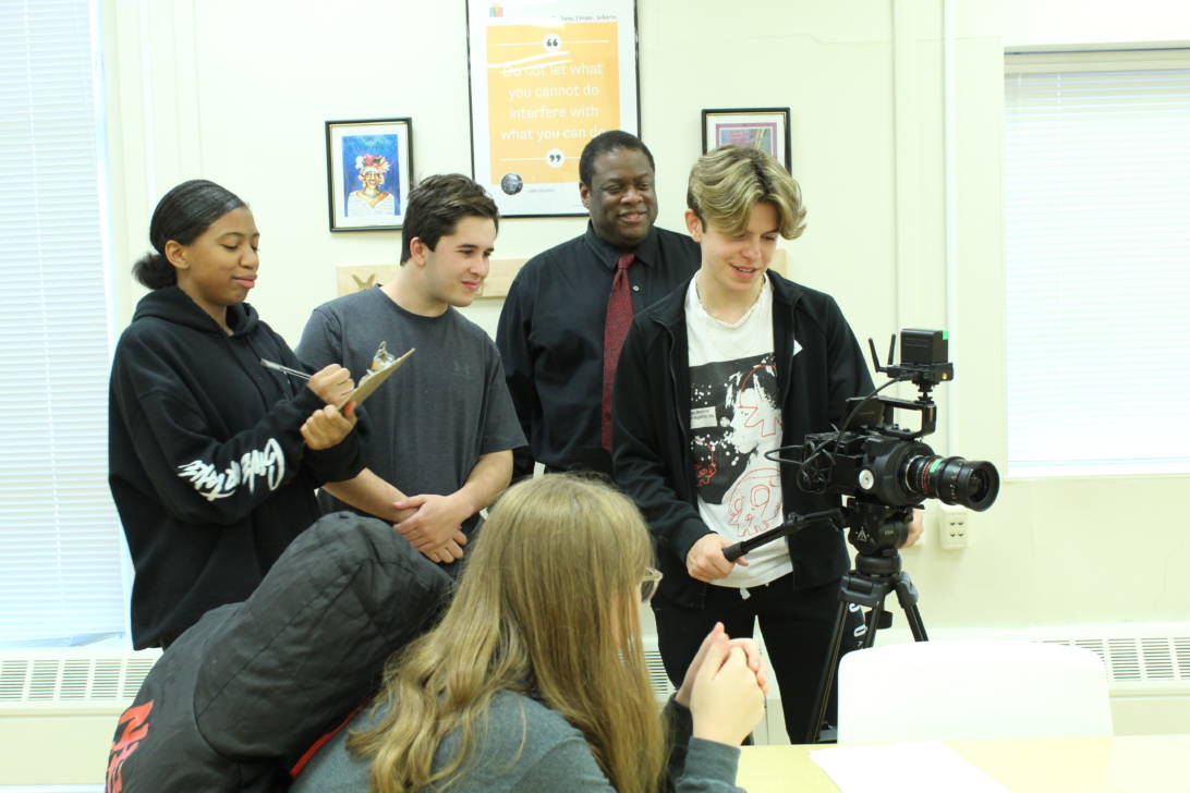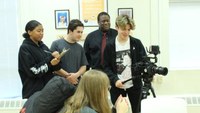 Michael Arbouet, an independent filmmaker, author and podcaster, has been enjoying a residency with students in the Introduction to Collaboration class, in which he has been coaching students about how to work in the many different aspects of the entertainment industry. Additionally, he is working with students in the Actors/Working with Filmmakers class, in which students are working on all aspects of the creation of two short horror films.