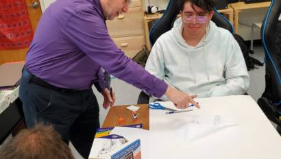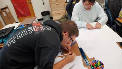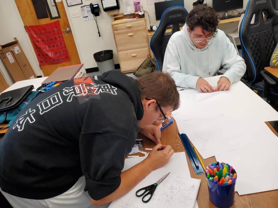 “I want to learn about all different types of art when I go to college, so working with Mr. K. helps me get to do that,” says student Thomas Ahrens. “It’s really cool to see how fast he thinks of ideas and images.”