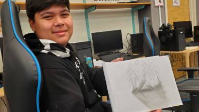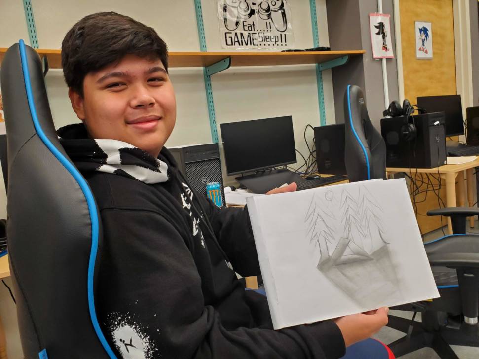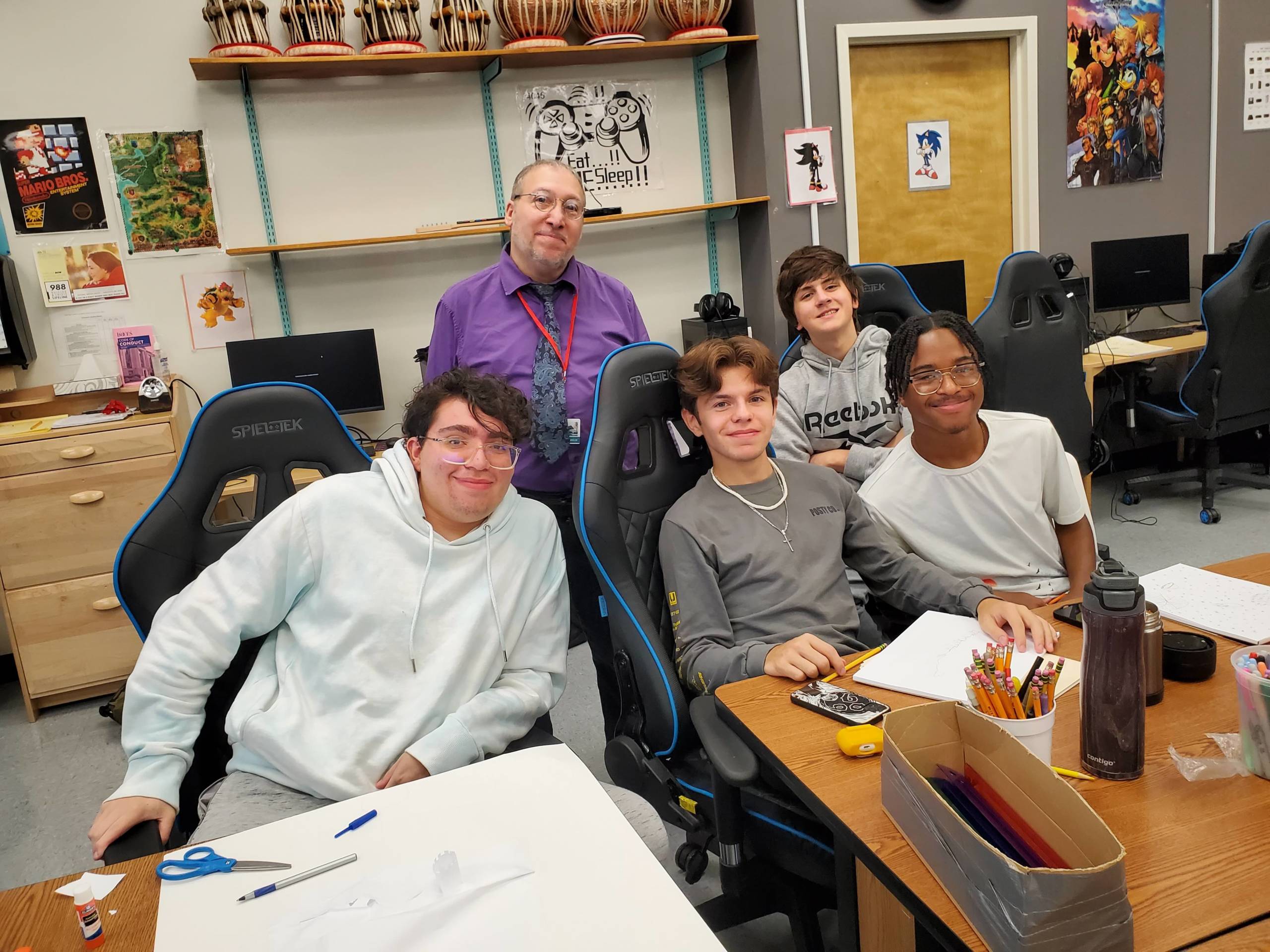 “Mr. K. gives an idea and general picture, and we make our own version of it,” says student Devin Dowd. “He is very positive. I also show him my games and he gives me reasons why the art I use is helping and how I can make it better.”