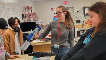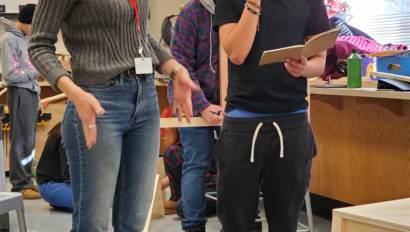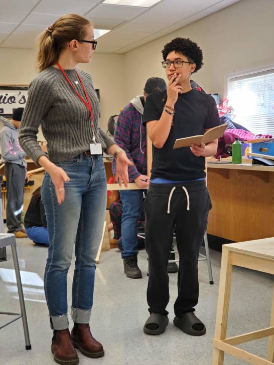Engels says she appreciates hearing Jessica’s ideas with other students too. Other concepts include an alien throne (that “turned into a wearable dress!”) and a car chair. “It’s exciting to have someone who literally builds props for Broadway shows come to our school,” adds Engels. “Jessica is very patient and thoughtful. It’s a great collaborative project that shows how props are developed for big shows. One of the things that is great about coming to LIHSA is that you get actual experience with people who do theatre for a living. It helps you make sure you want to go into the field.”