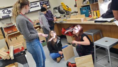 “I’ve been working on building a stool that is a clam shell based on Greek mythology and the birth of Aphrodite,” says student Evelyn Engels. “It’s a very big chair and it has been a real challenge. Jessica explains it really well, and it’s helpful to have her at LIHSA working on it with me. She thinks outside the box.”