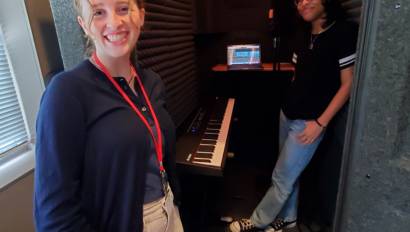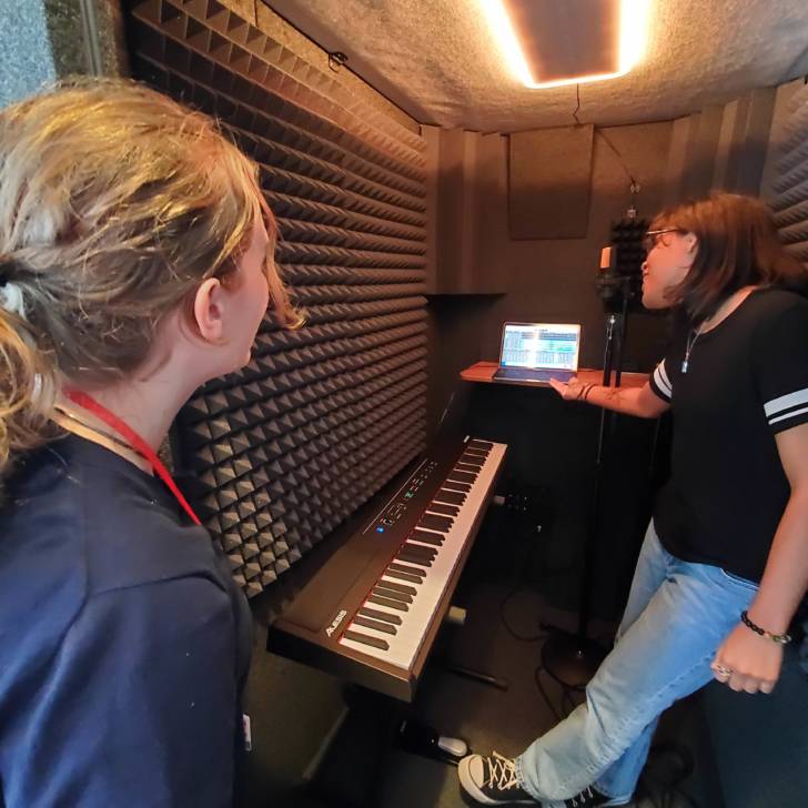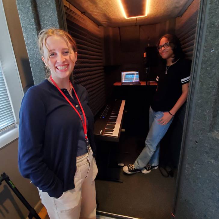 “Lindsay is very patient and helpful and gives a lot of insight into the songwriting process,” says Music student Xaire Romero. “Working with someone so young and knowledgeable about the music industry helps us realize doing it as a profession could be a reality. It’s nice to have a good role model who is close to our age.”
