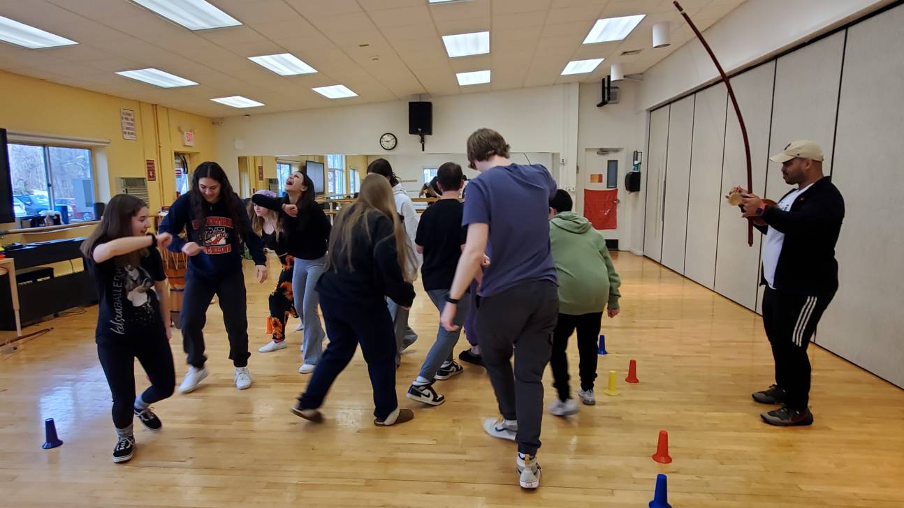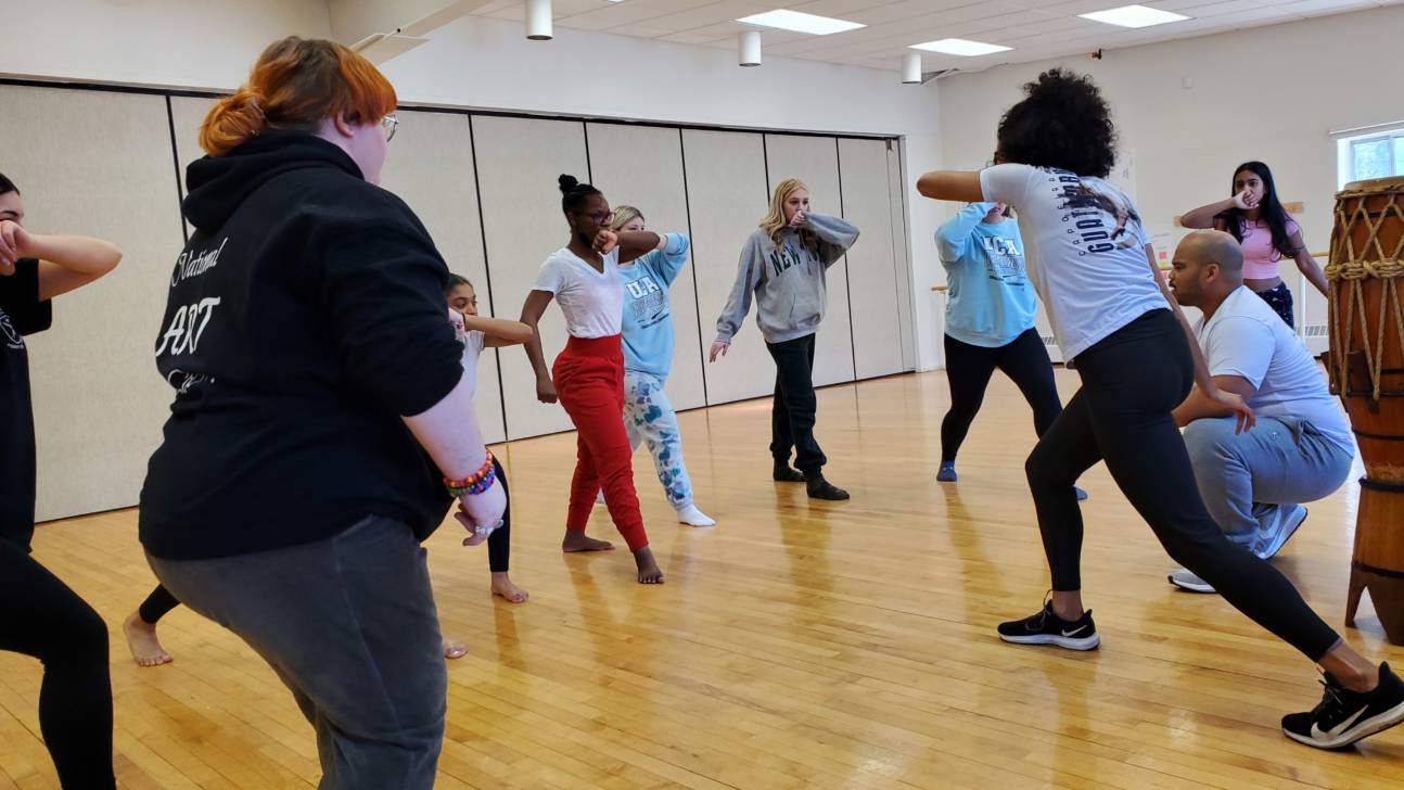 Rhythmic Exploration students have been enjoying a rotation of artists celebrating four unique cultures through the use of instruments and movement. Capoeira NYC, Flynn Irish Dance, Urban Bush Women, and Alan Asuncion (of Off-Broadway’s Stomp) are working with a combination of Music, Dance and Theatre majors in incredibly distinct styles as they demonstrate what makes the Brazilian, Irish, West African and Cuban cultures exciting and fun. The six-week residencies help young performers investigate the relationship between percussion instruments and the body as an instrument in order to effectively communicate across disciplines and express their artistic potential. Students are earning Work-Based Learning hours (a requirement for their CTE endorsement), through working with these exciting master artists!