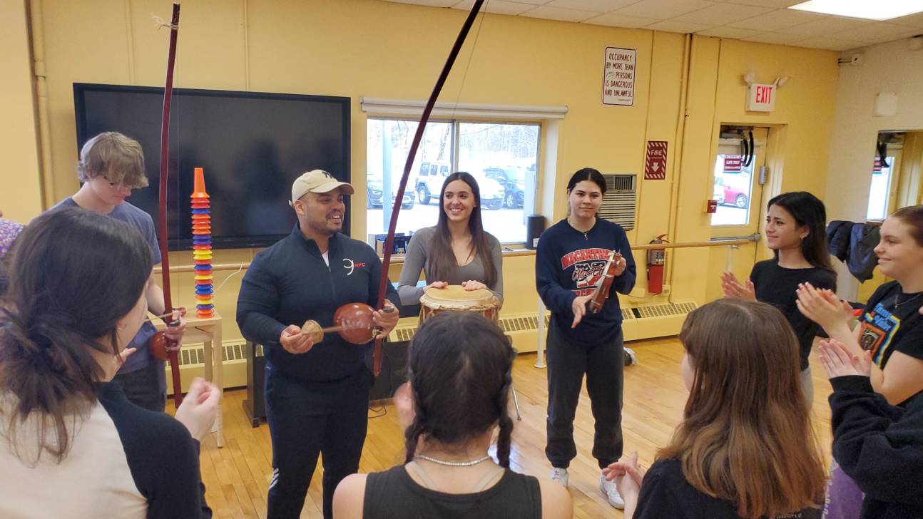 “I am so glad I got to play new instruments and dance because I haven’t done it in a while,” says Kendall Mathew, a music student. “Maybe I will take dance classes now! I especially loved Capoeira because it has types of moves that had gymnastics and cartwheels. I also really enjoyed working with Alan because I liked making instruments out of plastic bags and with my hands. The Irish dancing was a lot of fun too because of the many swings and how fast it was.”