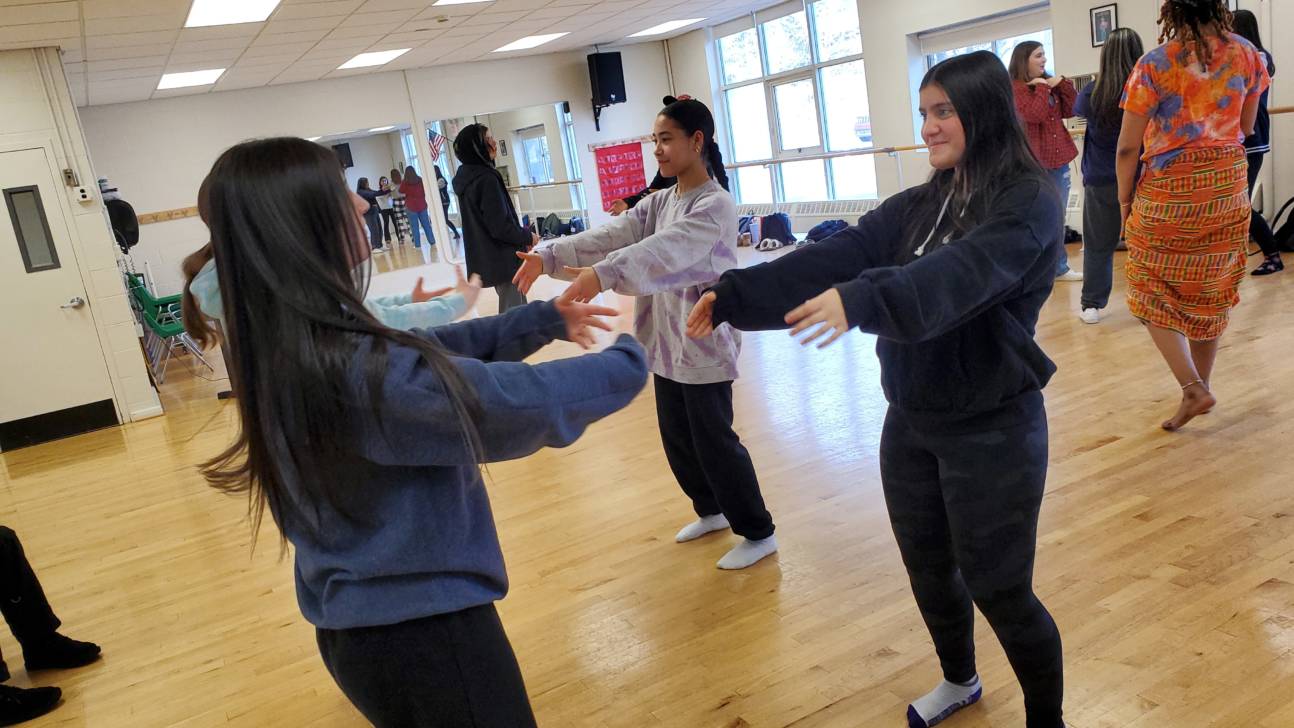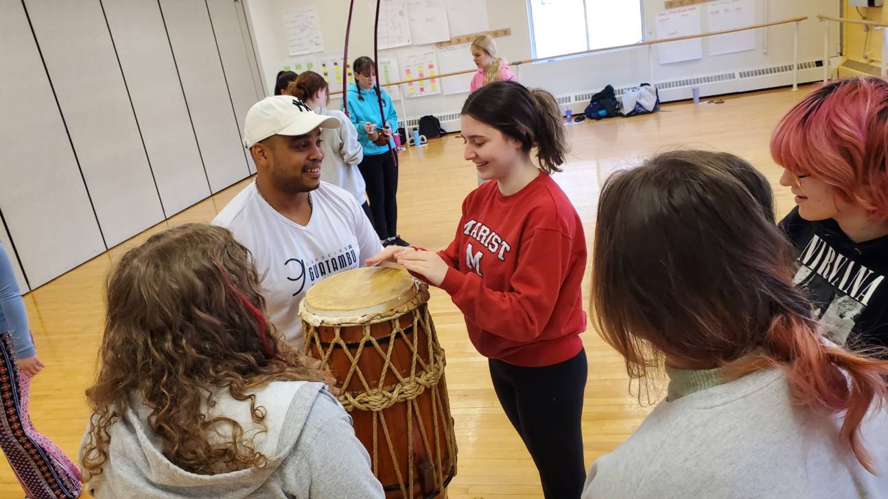“I really like how we get to explore different cultures and their customs,” says Xaire Romero, a music student. “I really enjoyed working with Dani from Urban Bush Women because her personality is fun and she interacted with us in a way that got through to us. I have a background in dance, so getting to dance again but within a different culture and context reminded me about why I love to dance.”