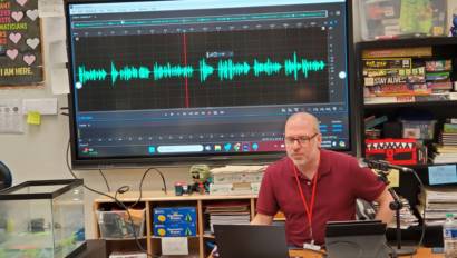 Audio Production and Game Design students welcomed voice actor Tom Dheere for a workshop about the voice over industry. Dheere’s voice has been heard in the games Red Dead Redemption, Red Dead Redemption 2, and Inspector Gadget (for which he was the title role). Additionally, his resume boasts thousands of projects, including commercials and audio books.