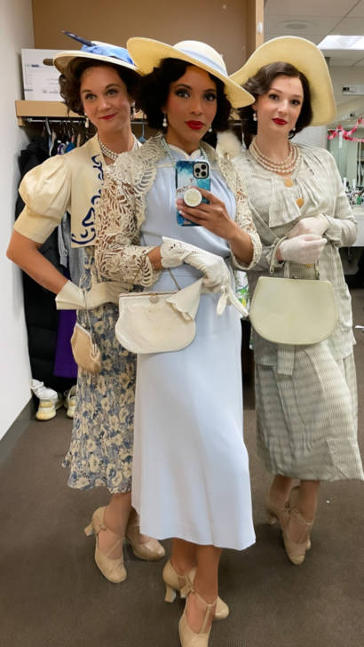Just as the school recessed for holiday break in December, she got a call from her manager that the Broadway production of Spamalot was auditioning for a short-term medical leave replacement for a member of the ensemble. She had a dance audition on a Monday and was asked to stay, sing, and for her measurements. She headed right to the wardrobe office to get sized and 20 minutes after leaving the fitting, she learned she was going to get an offer. She booked it! The next day began a whirlwind of learning her role and rehearsals. It was at once overwhelming and wonderful. “Everyone was kind, understanding, complimentary and supportive. They literally welcomed me to the family.” By Friday, she learned the show. She spent Christmas day with her son (and her notes) and made her Broadway debut on December 28, 2023 – 10 days after auditioning! She appeared through January 14, 2024.