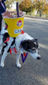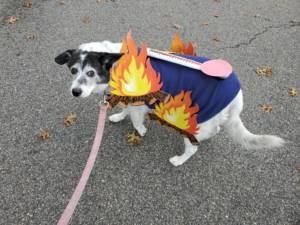 My pup Sofia is 12 years-old. Though she is very against it, she dresses up for Halloween every year as a dog pun. She has won the Friends of Valley Stream Dog Park costume contest eight times, and appeared in Long Island newspapers three times. She was “In the Doghouse,” a corn dog, chili dog, watch dog and doggy door, to name a few. She will always be the most special celebrity to me! (Plus, she’ll always be the easiest to interview!)