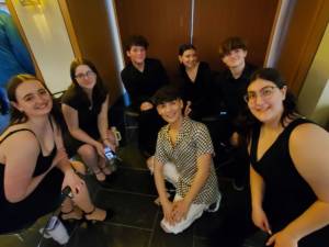 LIHSA alumnus Jakeim Hart (class of 2012) is currently performing in Broadway’s hit musical Hell’s Kitchen, which is nominated for 13 Tony Awards including Best Musical. When LIHSA faculty Iris Wiener and Erik Chocianowski visited him at a recent performance, he was thrilled to recall his roots in LIHSA’s music program and represent his alma mater from the stage at the Shubert Theatre.