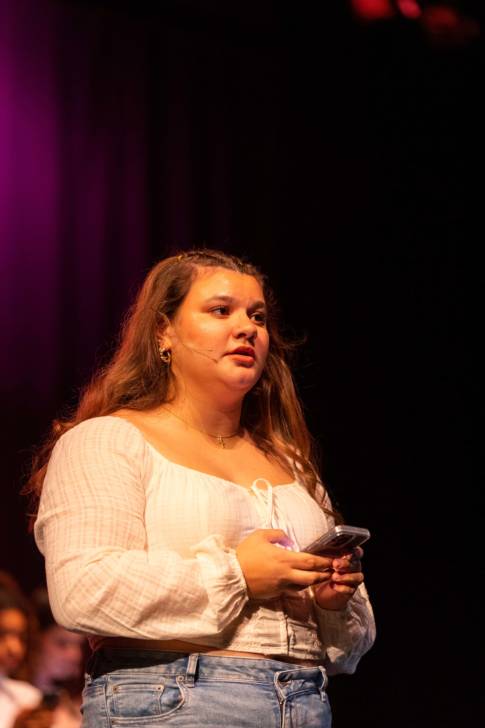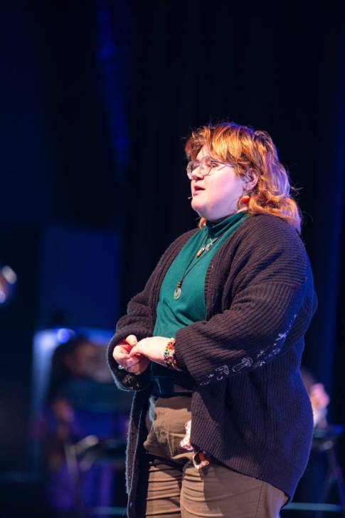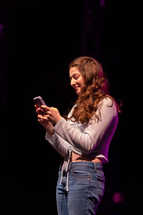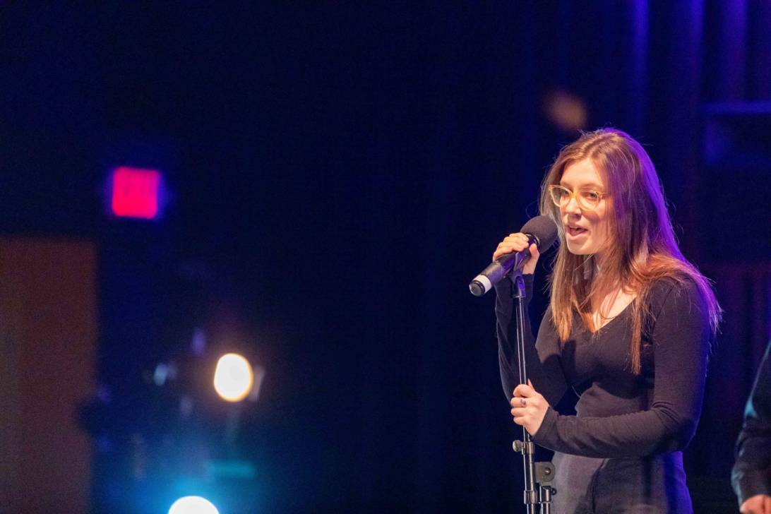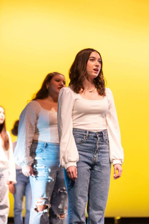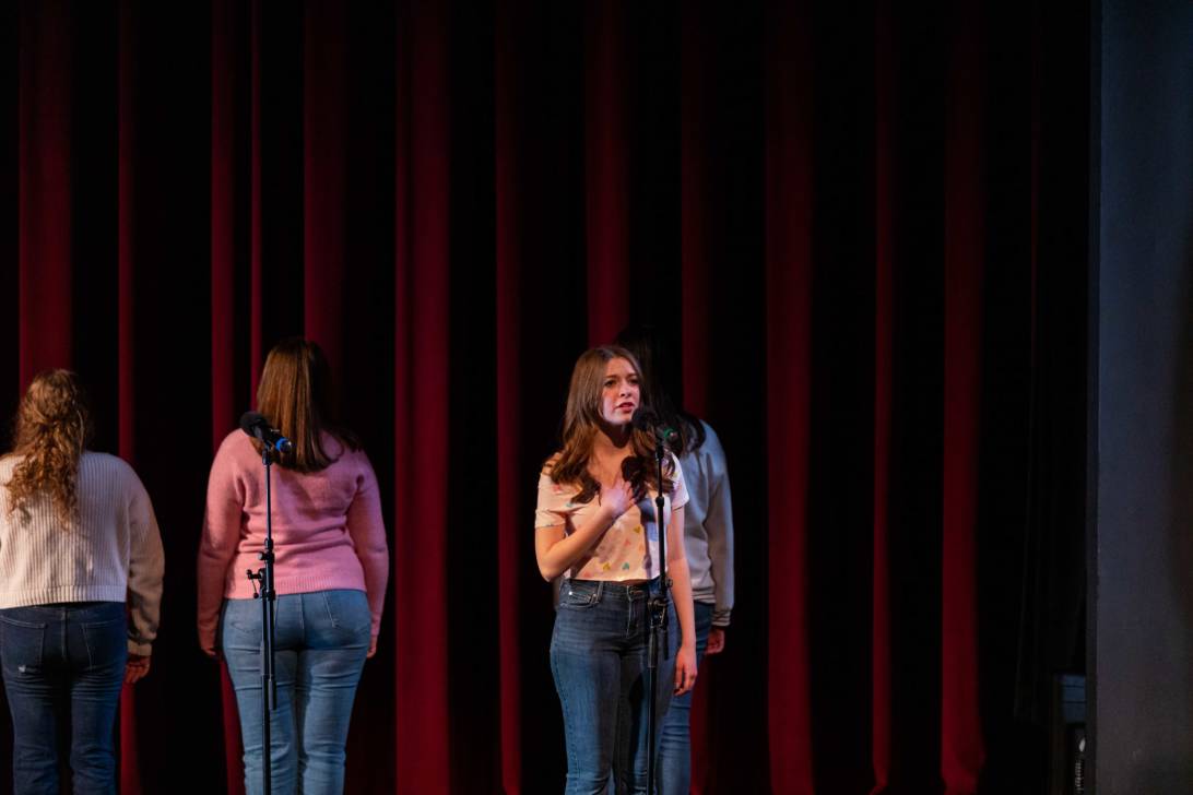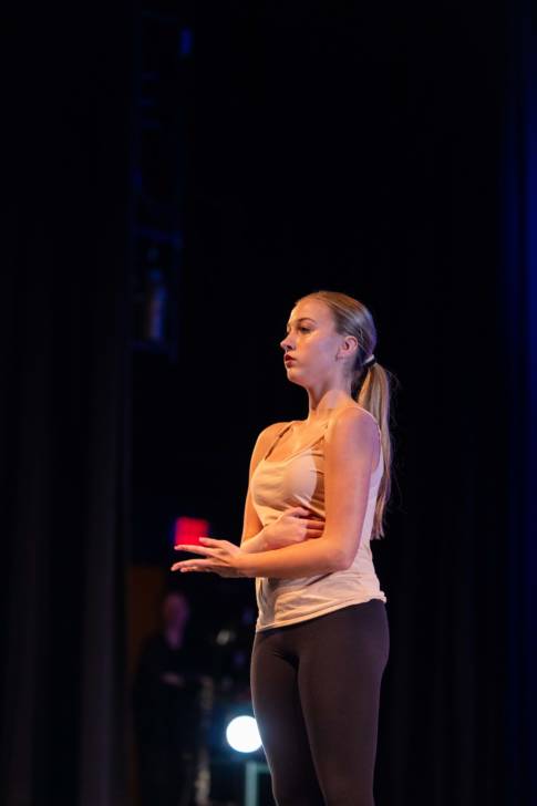 Audrey Underberg of Oyster Bay studies Music. She was in two pieces, opening the show with the Activism piece on body image. She was also in Song Interpretation and Analysis that was “Unruly Heart” from The Prom which she feels is an activist piece too. She found the rehearsal process was long but rewarding.