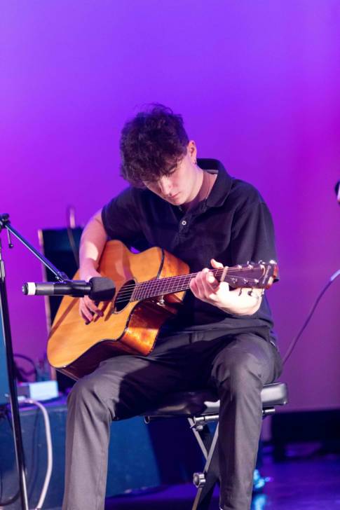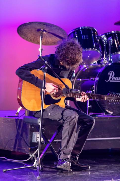 Charles Cerrito of Long Beach studies performing arts at LIHSA. “The pieces I worked on for LIHSA Winter Festival was from our Activism Class. We made a song about image and named it Perfect. It went really well. I was glad to play the song for all the people who support us.”