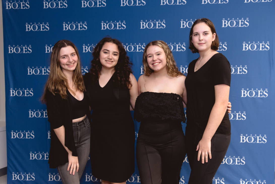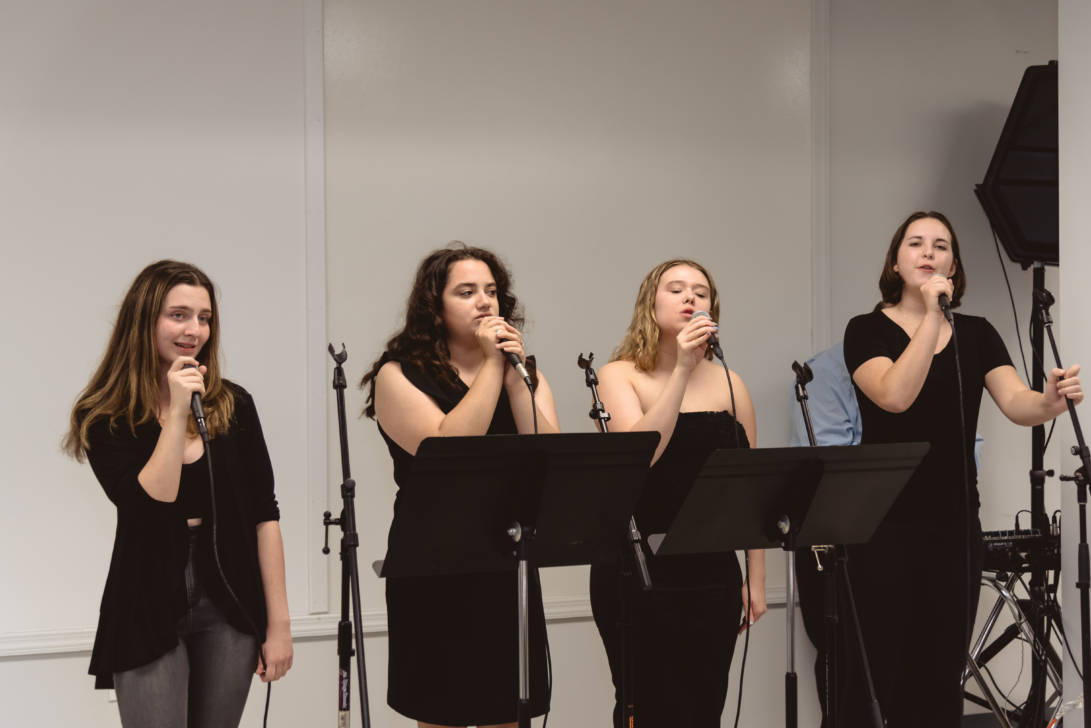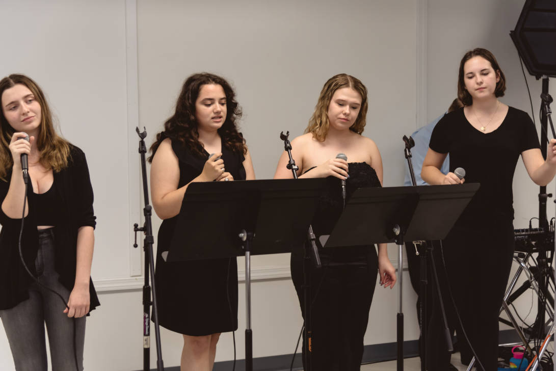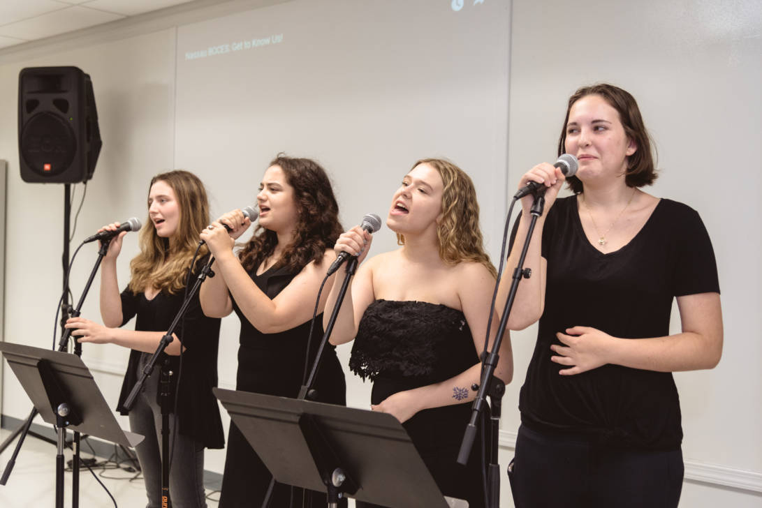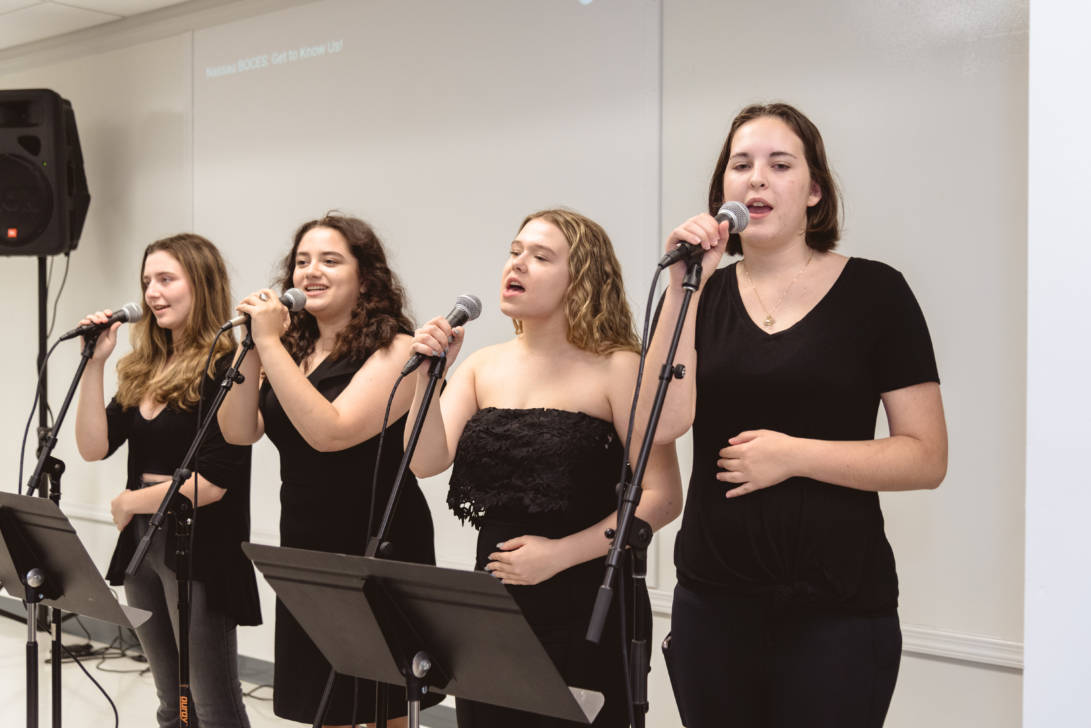 Erin Gerasimovich (Garden City), Ava Lithgow (Long Beach), Lauren Marchand (Jericho), and Gretchen Murphy (Garden City) entertained guests with live performances while Annalise Taylor (Massapequa) showcased her portfolio and spoke about the Production Managerial Arts classes for parents and potential students. We are so thankful to our wonderful students for sharing their time and talent with so many visitors.