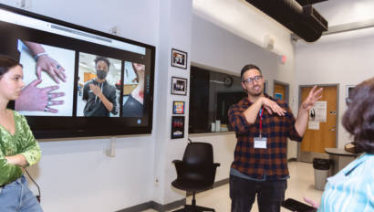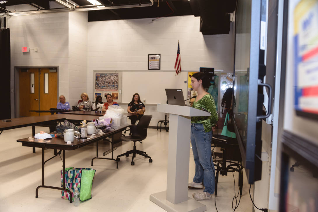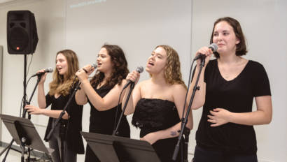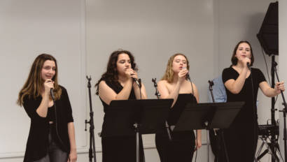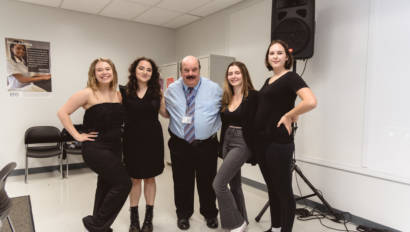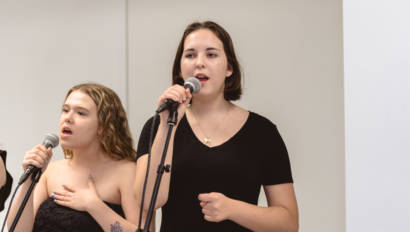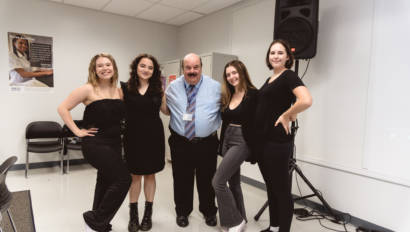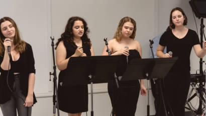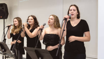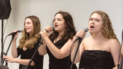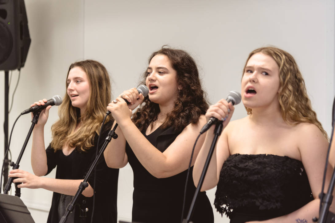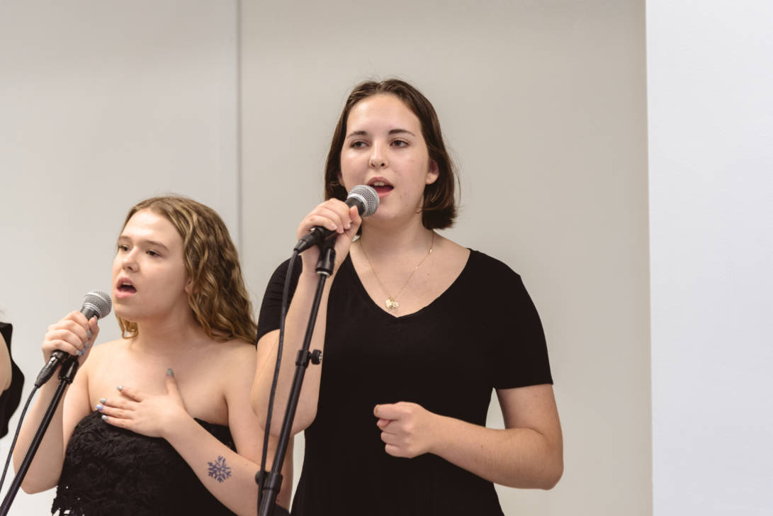 Erin Gerasimovich (Garden City), Ava Lithgow (Long Beach), Lauren Marchand (Jericho), and Gretchen Murphy (Garden City) entertained guests with live performances while Annalise Taylor (Massapequa) showcased her portfolio and spoke about the Production Managerial Arts classes for parents and potential students. We are so thankful to our wonderful students for sharing their time and talent with so many visitors.