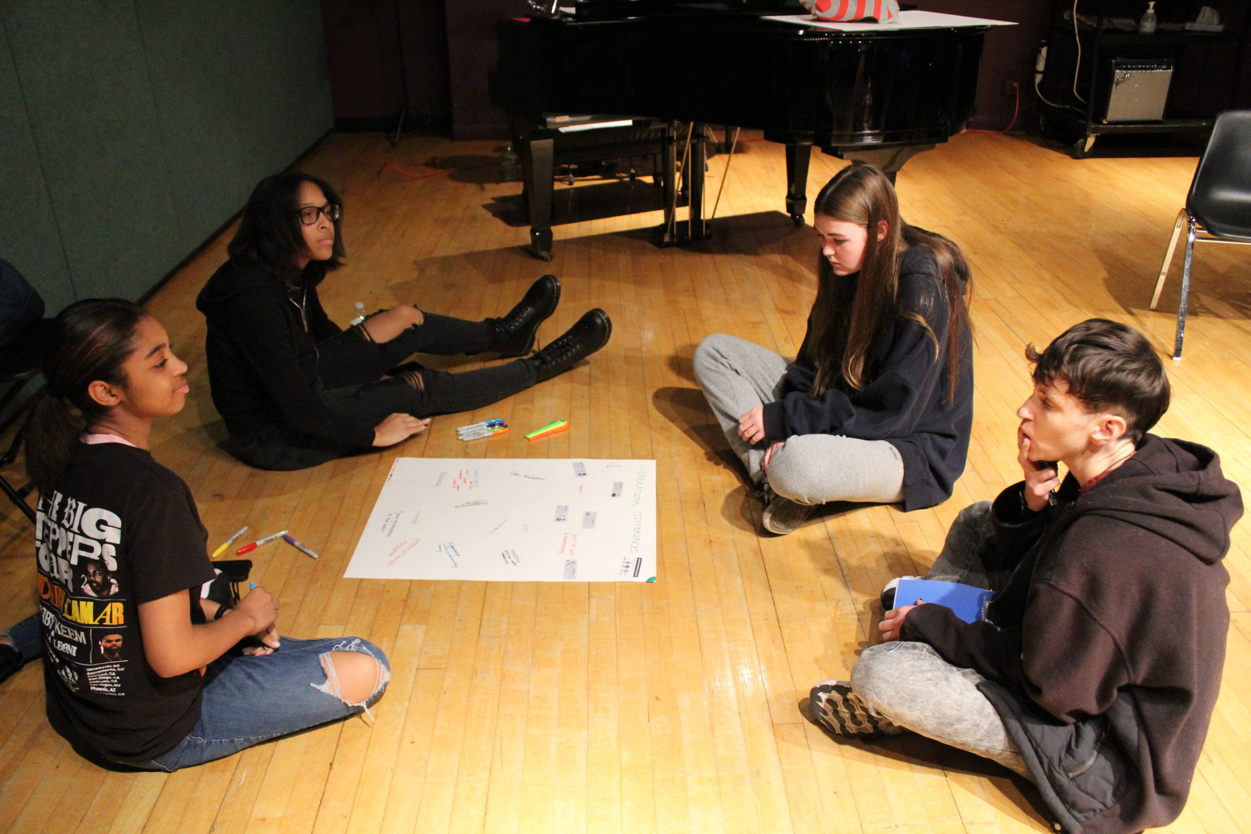 Students in the Activism and Performance in Theatre classes are excited to be working with Logann Grayce, a professional writer and actor with extensive experience in facilitating support groups and community events. Teachers Kim Larkin and Chris Brick helped Activism students choose issues that are important to them; with Logann’s guidance, they are now utilizing their ideas to create profound performance pieces. Logann has been instrumental in demonstrating courteous, respectful methods to improvise content and critique one’s peers, while also assisting with research and sharing tremendous resources.
