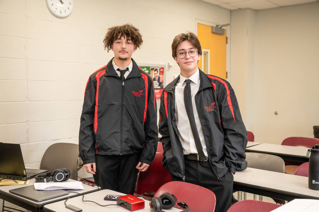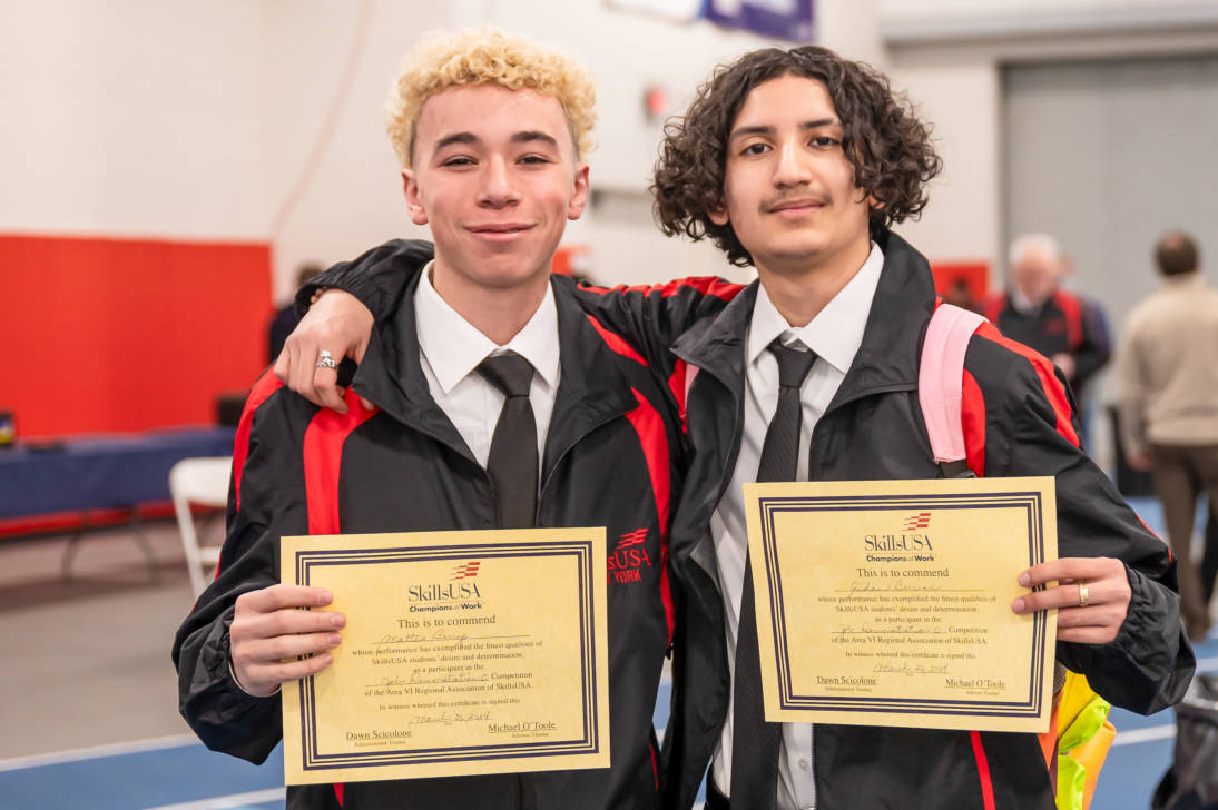 From the Production Managerial Arts Program, Aiden Berrios, 11th grader from Long Beach, and Matteo Berry, 11th grader from Mineola, competed in Job Demo Open. Aiden shared that Skills was “a fun experience. It was definitely worth the experience to understanding the difference in work forces and ways that things are built up.” The duo demonstrated how to how to fix, aim, and operate lights in a theatre. In their 6-minute presentation, they showed the judges the importance of lighting and how it can bring out different themes and elements in theatre.