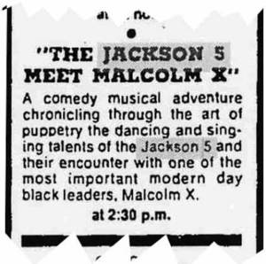 Our most popular show at the time was “Jackson 5 Meets Malcolm X”. The story was Michael wanting to leave his brothers and having a chance meeting with Malcolm X who told him that it was important that he stayed with his brothers because their image as a family was very inspirational to everybody else.